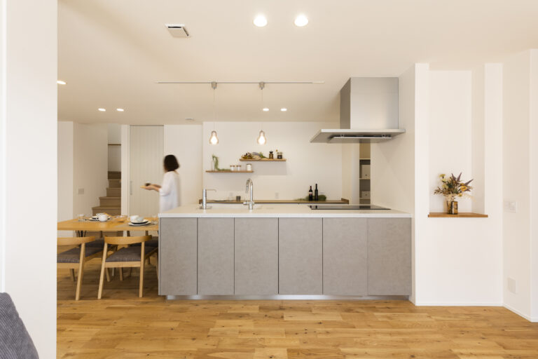 家族で過ごす、LDKは開放的でトーンを統一した内装も