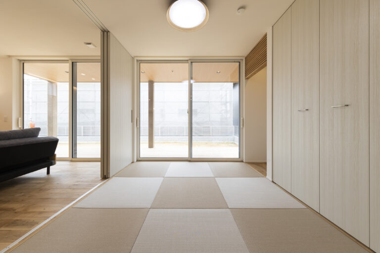 リビング続きの畳コーナーは、来客時やお子様のゴロ寝スペースにも最適で