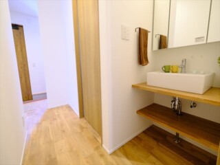 本日は、玄関から続く同線計画バッチリの造作洗面台です。