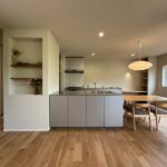 真っ白な塗り壁に無垢板が落ち着いた雰囲気の外観は、自然素材の持つ心地よさと、普遍性のある和モダンのデザイン。リビングに大きな引き込みサッシを設け、ウチとソトの境界をできる限り曖昧にした中庭デッキは、木製格子で囲み、人目を気にせず光や風を取り込むもう一つのリビングのような心地よい空間です。脱衣室で服を干して、乾いたらそのままファミリークローゼットに家族全員分の衣類を収納でき、働くお母さんの時短と家事楽の回遊動線を実際にご体感いただける建物が完成しました。