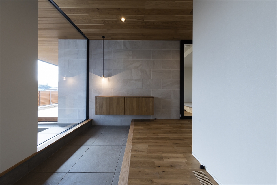 内と外の繋がりが美しいラインを際立たせてくれる、玄関ホール。
