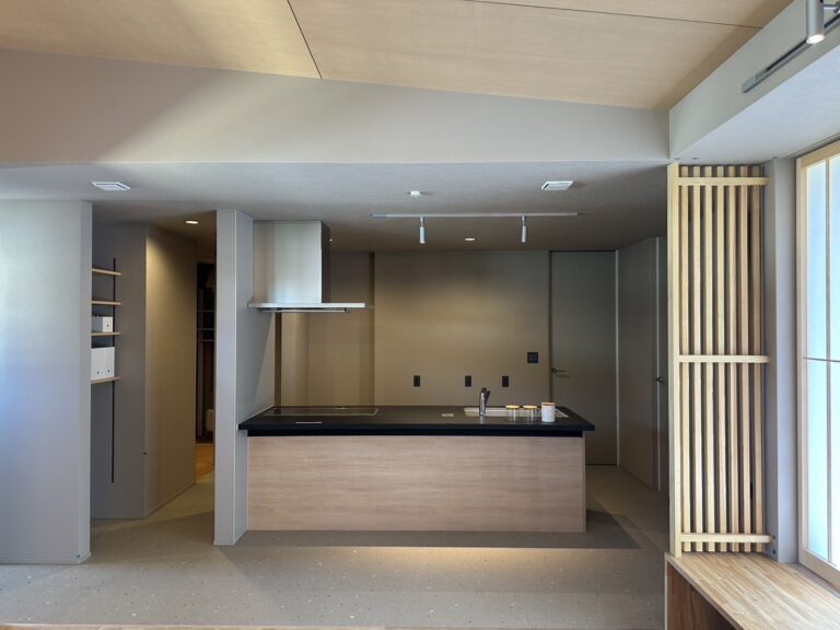 こんにちは。イノセンス建築設計事務所の田中です。 今回の新築のお家は、木製格子をあしらった、こだわりの“和モダン”デザイン。キッチンを中心に回遊できる動線は、洗…