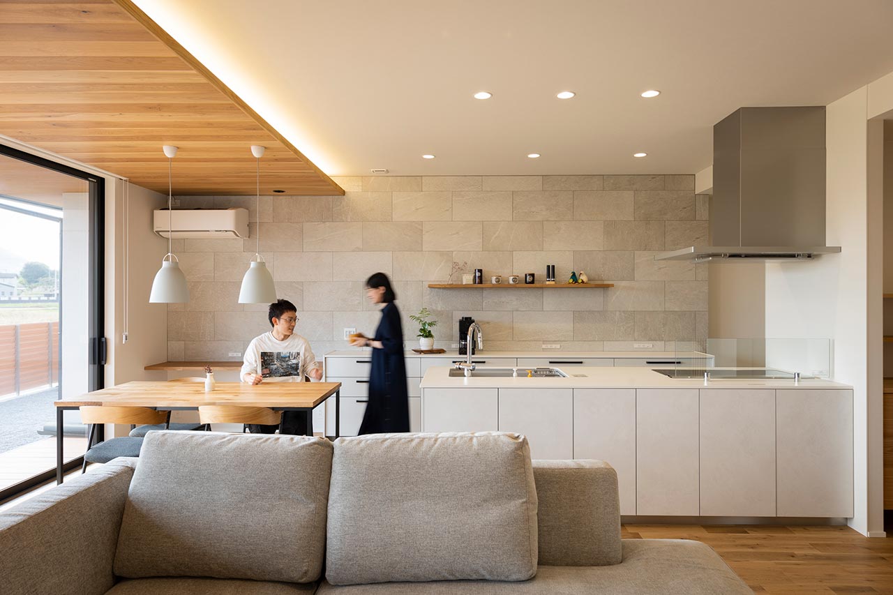 毎日過ごす家なので、快適に過ごしたい。キッチンとダイニングは横並びで配膳しやすく、洗濯機から物干し場、クローゼットは一直線にすることで、家事の時間が短くなります。収納の棚は家族みんなが使いやすい高さに設計にすると、出し入れしやすくなります。窓から外の景色を愉しめるのは、とても心地よい空間です。